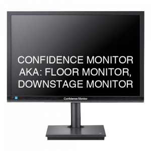 Performers, singers, comedians and generally those who need to see text or lyrics to perform at their best use a confidence monitor or downstage teleprompter monitor.